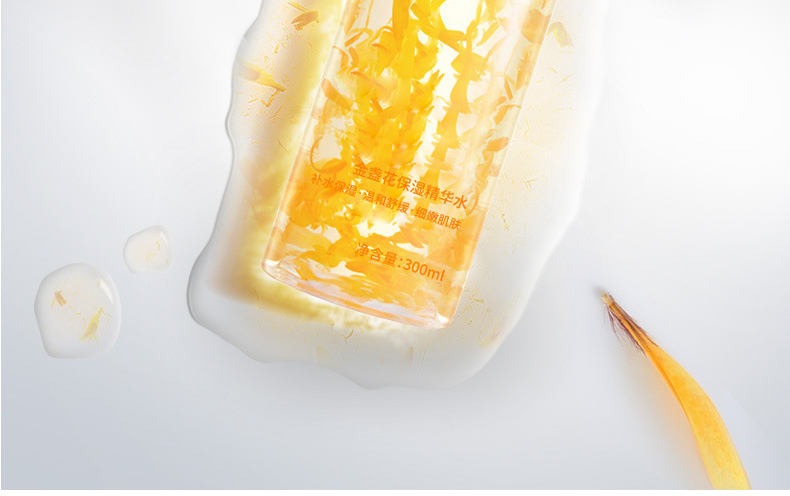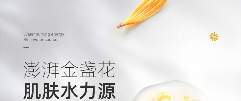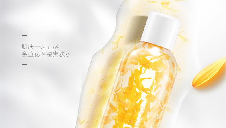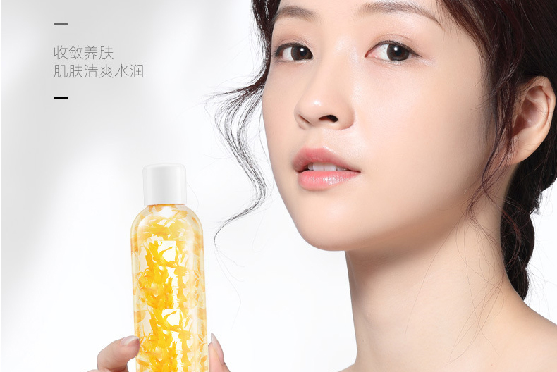 Calendula water extract natural, contains the natural pigment beta-carotene, can promote skin renewal, improve skin quality, but will not cause the phenomenon of artificial color caused by skin yellowing.