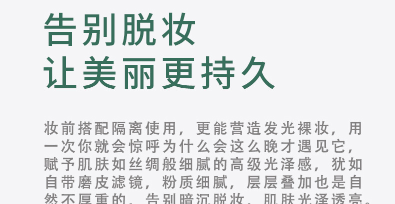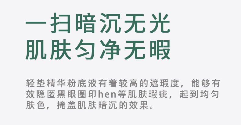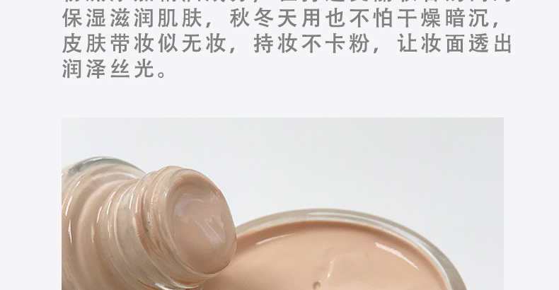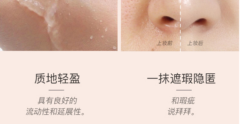 This liquid foundation has a good concealer effect. It is silky and delicate, light and makeup free. With a thin layer, it has a high degree of concealer, which can effectively hide various skin problems such as dark circles, skin spots and so on, and even out the skin tone and cover up the dullness of the skin. Clear and natural, say goodbye to false white, let the skin from the inside light.