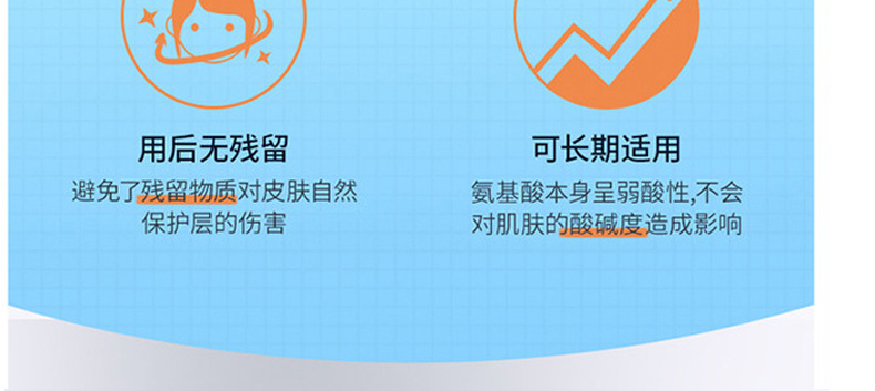 The facial cleanser foam is dense and elastic, rich in amino acid active essence, giving the skin sufficient nutrients, especially containing hyaluronic acid, after washing the face and skin, it is soft, delicate and moist, very comfortable, and the experience effect is very good, adding a variety of patented ingredients, giving skin nourishing ingredients after cleaning, and retaining skin moisture, it is a gentle and moisturizing amino acid cleanser worth testing